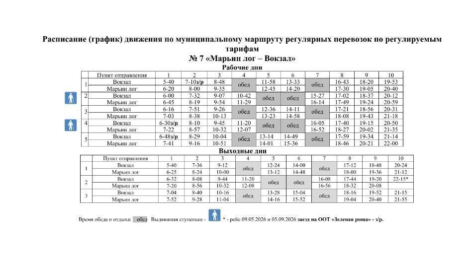 Расписание движения по муниципальному маршруту регулярных перевозок по регулируемым тарифам №7 "пос. Боровой - Вокзал"